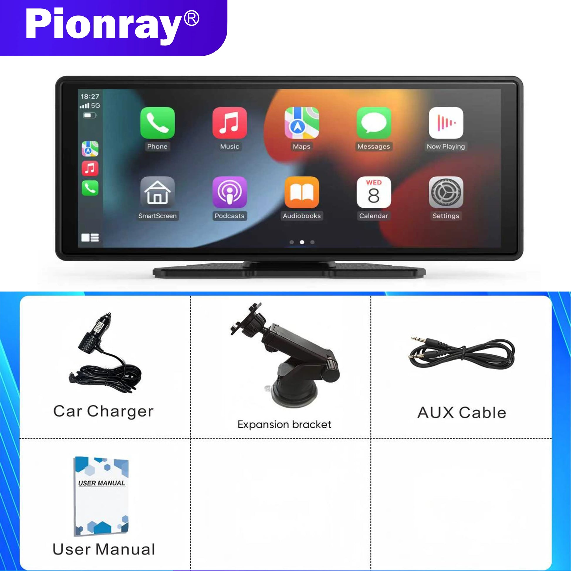 Carplay Screen for Car, 10" Portable Wireless Carplay&Android Auto, ar Stereo Audio Receivers for Car GPS Navigation Mirror Link